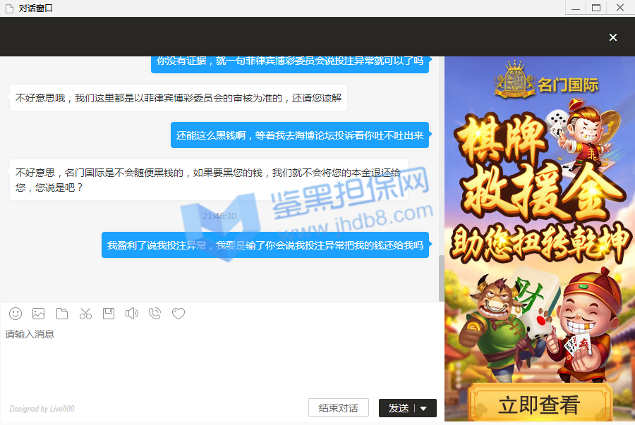 这个月想在云顶家打VIP,于是基本体育时时彩都在他家玩了。之前有过一次波音流水不更新。到账我10多个小时才取款。我回头看看我和他们之前那半小时回复一次客服的对话,我自己都感到心酸啊。 这几天去参加活动。无奈啊又开始同样的剧本了。我存了9000元。到现在还流水不足。在波音打了一万多流水了。在他的投注后台记录里面只有四五千。我也是搞不懂这机制了。客服一直和我说我的流水额度不足。我把我的这些在游戏里面的投注截图给他们看,他们永远视而不见。我找他们的微信客服经理。他和我说国际线路异常、可是也没这样的异常法吧。一下子流水会更新。一下子流水又没了。 而且说会补回具体是什么时候呢。上次一样情况少了我一万多流水,说实话反水钱倒是小事情我也不在乎。问题是你们家这样的情况发生。真的是把玩家作报告啊。我这人真心不喜欢吐槽或者责怪什么事情。毕竟和气生财。问题是这个事情是一而再再而三发生了。而且你们的客服明显机器人一样的敷衍了事每次说这些事情。这样的客服质量我是真心没遇到多少过。你们说可不可气啊。作为玩家还要求着客服帮你解决事情,流水快2倍了还不能取款。希望鉴黑担保网的客服能把我说的及时反馈下吧。真心的无奈