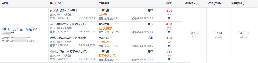 3.盈利 :投注额 X (标准盘赔率-1)=100 X 0.94=94